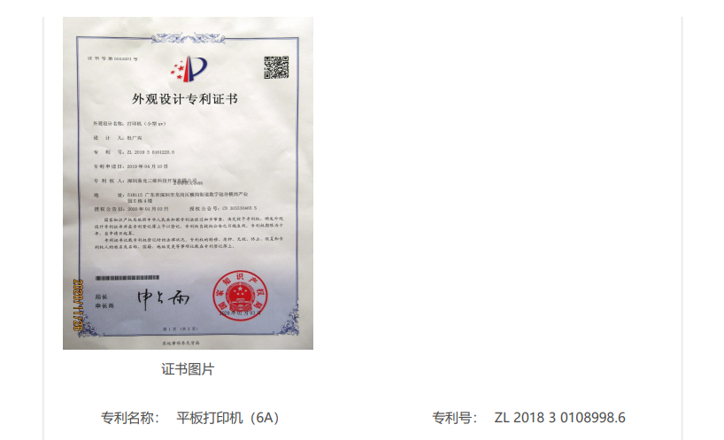 易龍三維出品的打印機(jī)追求精益求精,所有產(chǎn)品均已通過國(guó)際SGS,CE等專業(yè)認(rèn)證。易龍三維生產(chǎn)的萬能平板打印機(jī)已經(jīng)成為搶占市場(chǎng)先機(jī)和國(guó)內(nèi)影像設(shè)備領(lǐng)域的先鋒,在銷往內(nèi)陸、港澳臺(tái)地區(qū)的同時(shí)產(chǎn)品已經(jīng)出口到世界160多個(gè)國(guó)家和地區(qū),并在德國(guó)、日本、俄羅斯、羅馬尼亞等國(guó)家授權(quán)了代理商。